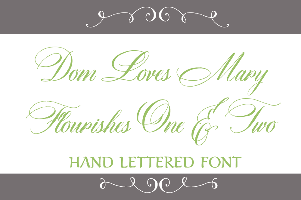 Dom Loves Mary Font Flourishes include a total of 144 hand lettered calligraphy flourishes.